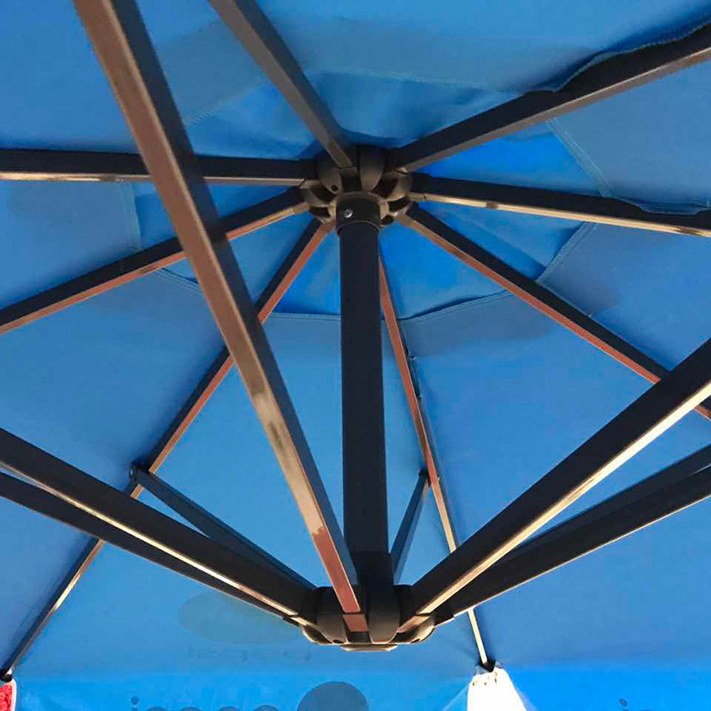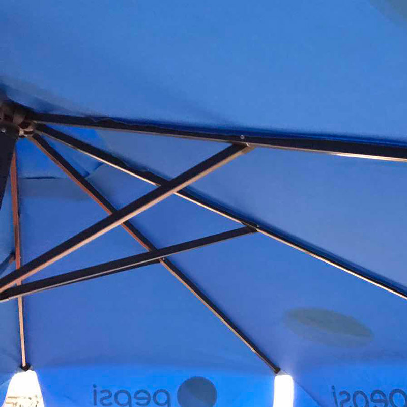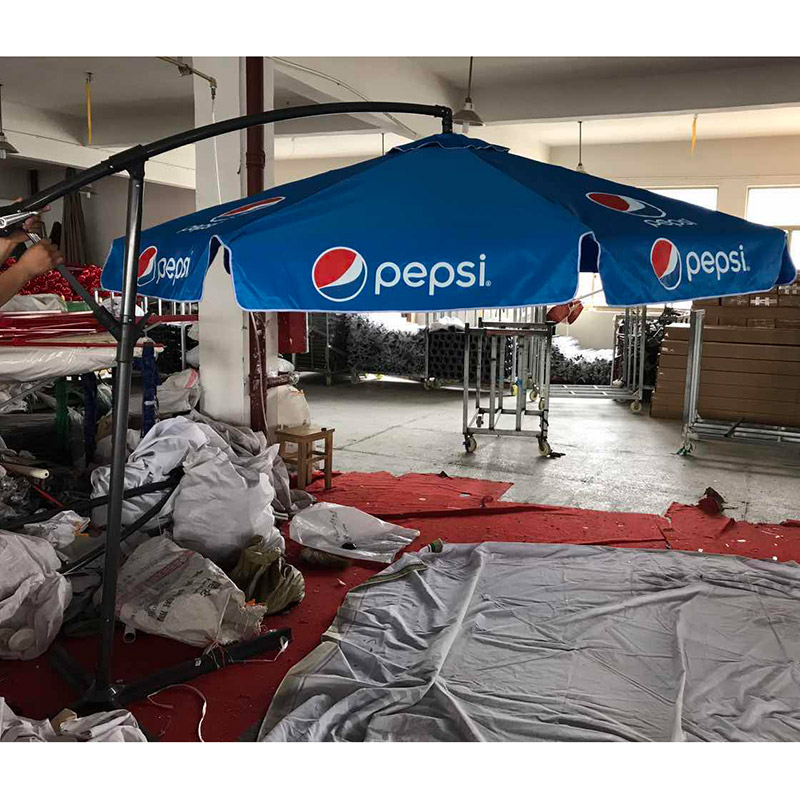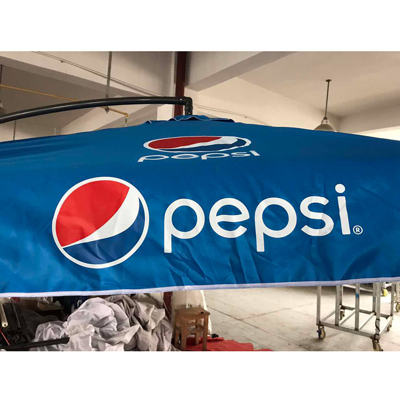 Branding:Custom dyed Pepsi blue fabric+4 Pepsi logos on top fabric+8 Pepsi logos printed on side flaps